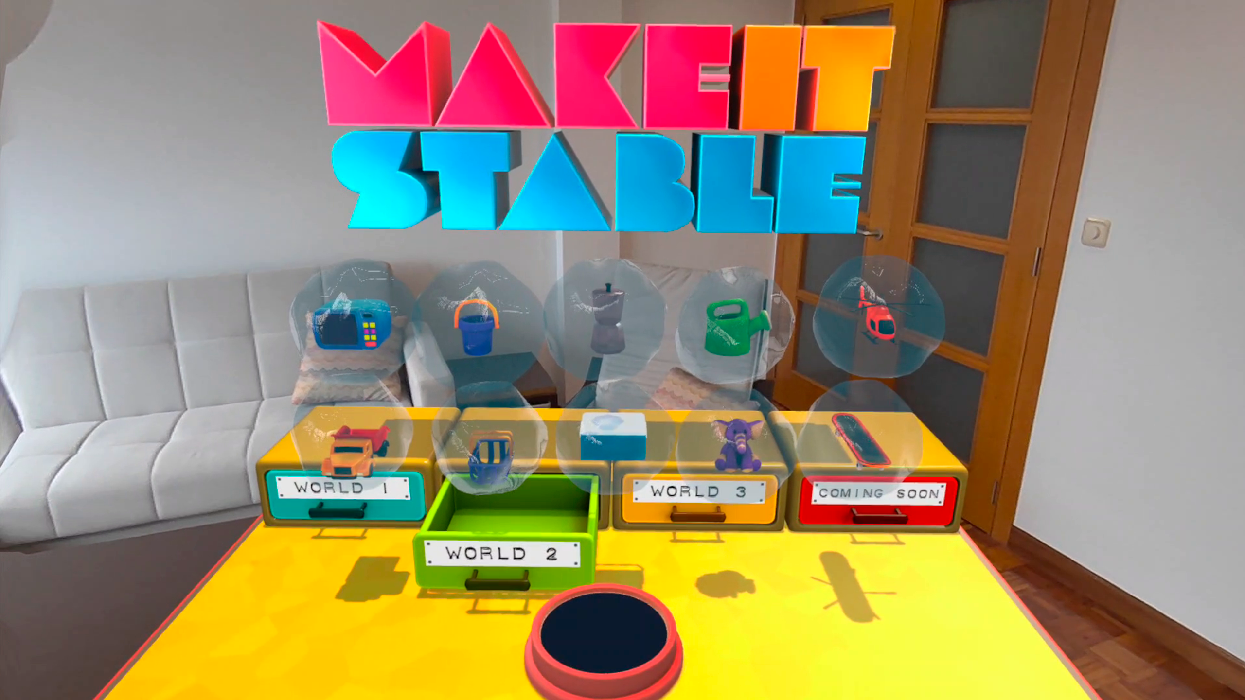 The name says it all: stack objects into a tower and make sure it doesn’t come crashing down. While it might sound simple, this isn’t your ordinary stacking game. Make It Stable brings the magic of mixed reality to life, letting you build with playful, animated items that react in surprising and dynamic ways.