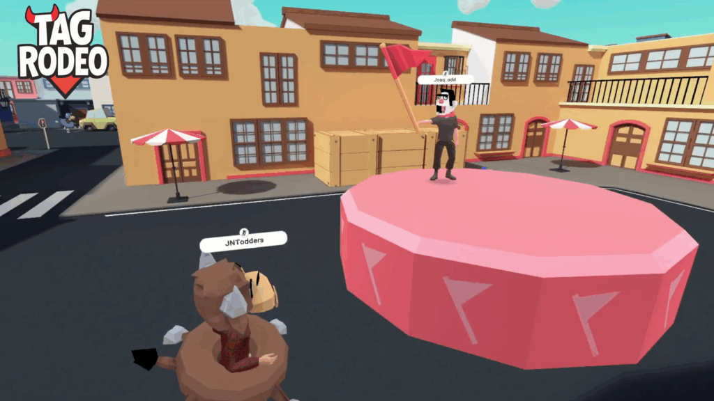 Set in a colorful Spanish-style plaza, TAG RODEO is a lively multiplayer VR game where speed, skill, and laughter collide. Players jump into a dynamic Runner vs Bull format โ some sprinting to grab flags, others charging to stop them โ in an energetic blend of chaos and camaraderie.